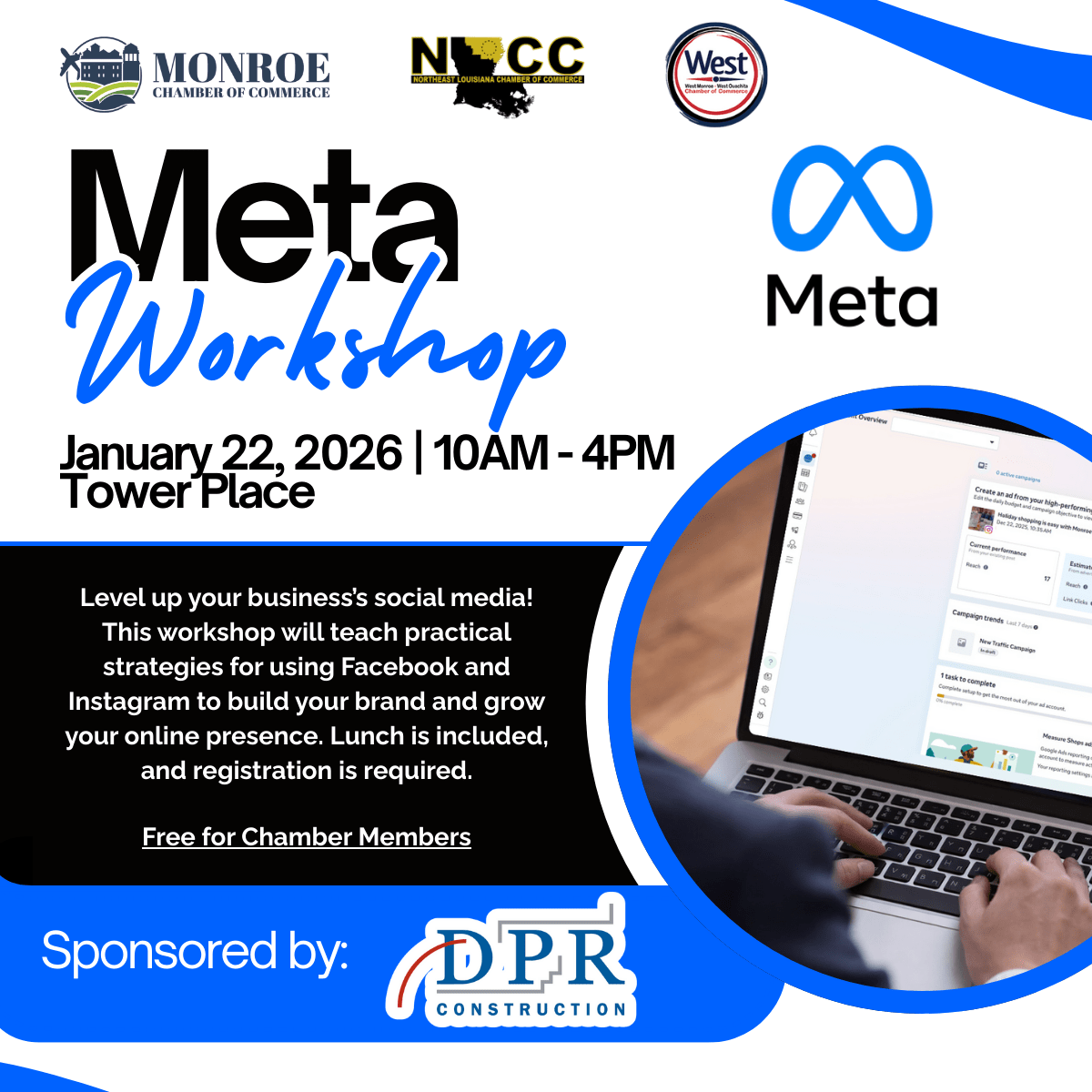 Let's Level Up your business's social media. This workshop will teach practical strategies for using Facebook and Instagram to build your brand and grow your online presence. Lunch will be included, and registration is required. See you there!Images